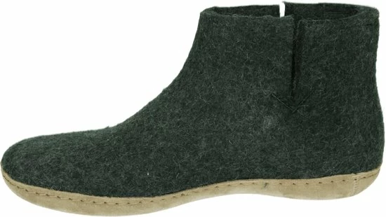 De Glerups Laars met leren zool is gemaakt van 100% puur natuurlijke wol met een zool van zacht plantaardig gelooid kalfsleer.