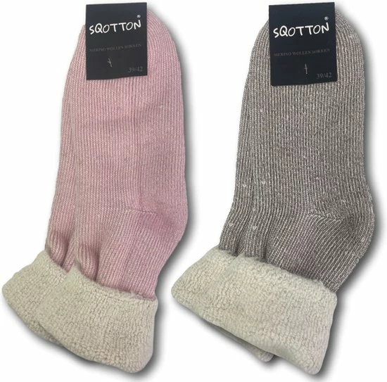 2 paar dikke wollen huissokken in de kleur roze en bruin met echte merinowol. Deze zachte, pluche merinowol gevoerde huissokken heeft de perfecte uitstraling voor de koudere dagen. Deze gevoerde huissok houdt warmte vast in de sok en voelt comfortabel aan zonder je voeten te laten zweten. Deze merinowollen huissokken zijn een mooi alternatief voor de klassieke huispantoffels. Je kunt thuis alle aandacht trekken met deze wollen huissokken of je nu lekker gaat te chillen op de bank of gewoon gaat sloffen in de woonkamer, je voeten zullen zeker warm en fijn zitten dankzij deze wollen huissokken. Niets is lekkerder dan heerlijke warme huissokken aan te trekken en te genieten van de koude dagen. Deze merinowollen huissokken zijn verkrijgbaar in verschillende combinaties.